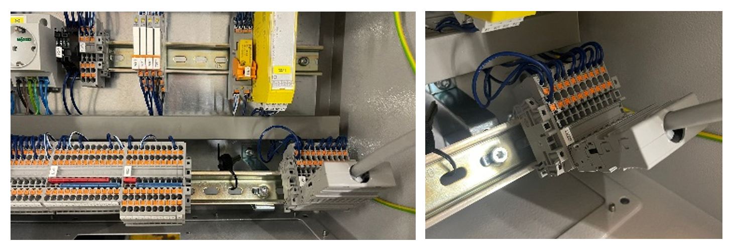 Open the flap of the control cabinet with the chained key (EMKA). The control cabinet is located under the overhead canopy.