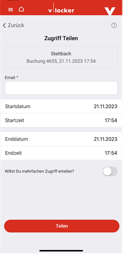 “Zugriff teilen” wenn die Buchung mit einer anderen Person geteilt werden soll. Erklärung siehe Seite Zugriff teilen |